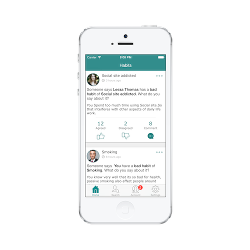 Get top trending habits of your friends on home page. Agree and Disagree on those habits, put your comments on habits.